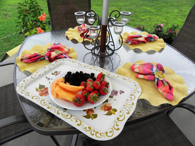 This is a perfectly refreshing summertime addition to your breakfast or brunch that will pleasantly surprise your guests! We ate this at the Azalea Inn whenever we stayed there on our recent Savannah trip. Every night at the Inn, they put up on a pretty chalkboard what was for breakfast the next morning, and whenever we read "watermelon benedict" we were kind of perplexed--curious for what we were going to be served. Of course usually when you see some benedict, it's usually eggs. (So I thought umm....eggs and watermelon?!!) Our interest was peaked and we were pleasantly surprised by what was presented to us as the "first course". A colorful dish that consists of sliced watermelon and kiwi on granola with a thick drizzle of yogurt. Lovely on the eyes and yummy on the tummy! :)